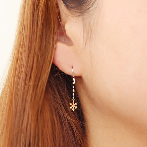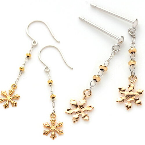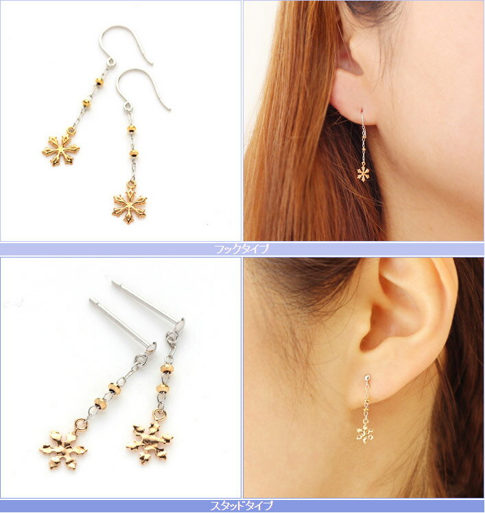 【スーパーセール10%OFF】雪の結晶 フックピアス スタッドピアス レディース K10ホワイトゴールド イエローゴールド・プシュア 冬 シンプル 人気 地金ピアス 誕生日プレゼント ロングピアス 大人かわいい チェーン ロングピアス 可愛